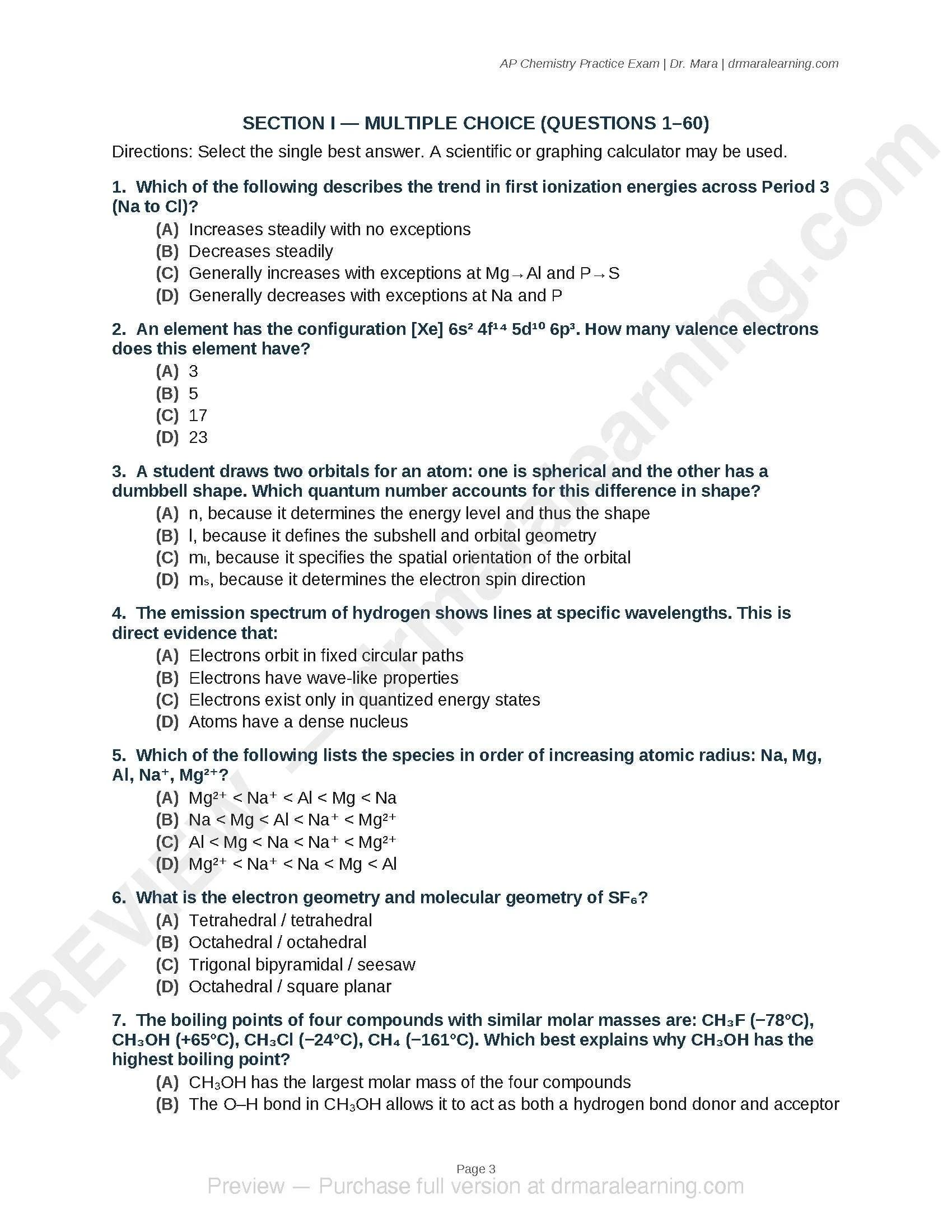 AP Chemistry Full Practice Exam: 60 MCQ, 7 FRQ (Digital Download)